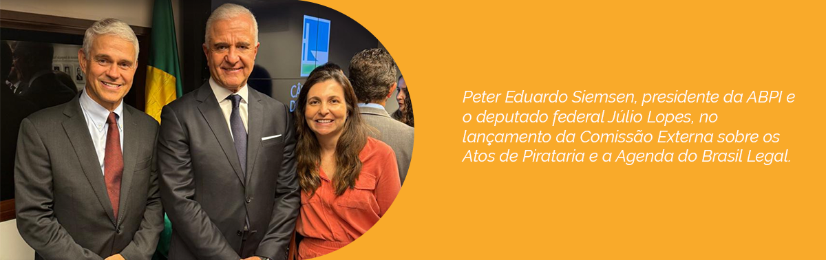 O presidente da ABPI, Peter Eduardo Siemsen, participou do lançamento da Comissão Externa sobre os Atos de Pirataria e a Agenda do “Brasil Legal”, no último dia 10 de março, na Câmara dos Deputados do Brasil, em Brasília. A iniciativa, liderada pelo deputado Júlio Lopes (PP-RJ), coordenador da Comissão e presidente da Frente Parlamentar de Propriedade Intelectual e Combate à Pirataria, reúne diferentes setores em torno de um objetivo comum: enfrentar o avanço do mercado ilegal e seus impactos na economia, na inovação e na geração de empregos.