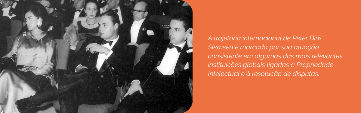 Peter Dirk Siemsen foi presidente internacional e Membro de Honra da AIPPI (Association Internationale pour la Protection de la Propriété Intellectuelle), fundador e presidente de honra da ASIPI (Asociación Interamericana de la Propiedad Intelectual), além de ter ocupado posições de destaque em outras instituições internacionais, desempenhando papel essencial na integração do Brasil ao cenário global da Propriedade Intelectual.