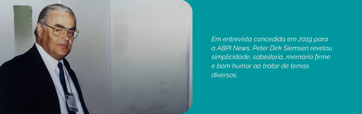 Quando completou 90 anos de idade, em 2019, Peter Dirk Siemsen concedeu a seguinte entrevista para a ABPI News. Ele estava em sua casa, no Jardim Botânico, no Rio de Janeiro, às vésperas de viajar para o Congresso Internacional da AIPPI, em Londres. Na conversa, revelou simplicidade, sabedoria, memória firme e bom humor ao tratar de temas diversos, como os seus primeiros passos no campo da Propriedade Intelectual, a fundação da ABPI, as legislações esculpidas pelo regime militar e o relacionamento com o INPI. Ao tecer algumas ideias sobre o futuro do Brasil, sentenciou: “Educação é o ponto chave do nosso futuro”. Confira a entrevista novamente.