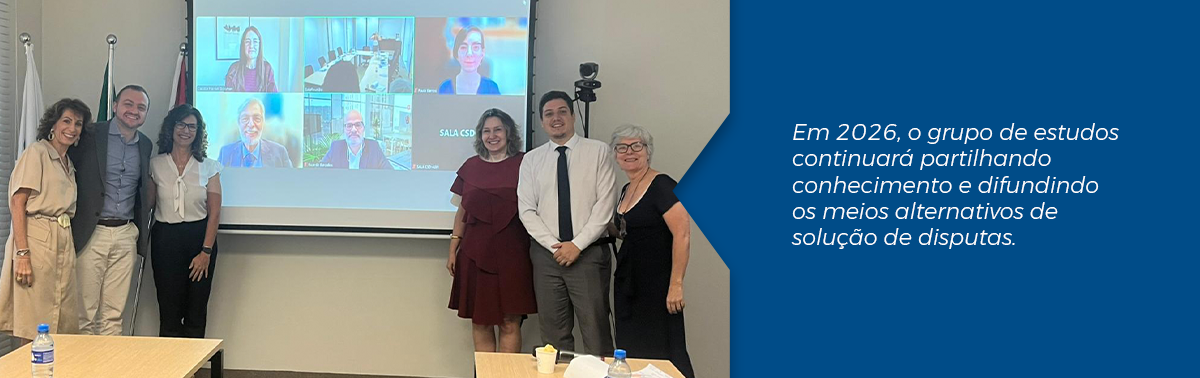 O grupo de estudos irá continuar no próximo ano com seu propósito de partilhar conhecimento e difundir os meios alternativos de solução de disputas, demonstrando como podem ser utilizados já na fase de elaboração contratual. O grupo é aberto a todos os mediadores da CMed-ABPI.