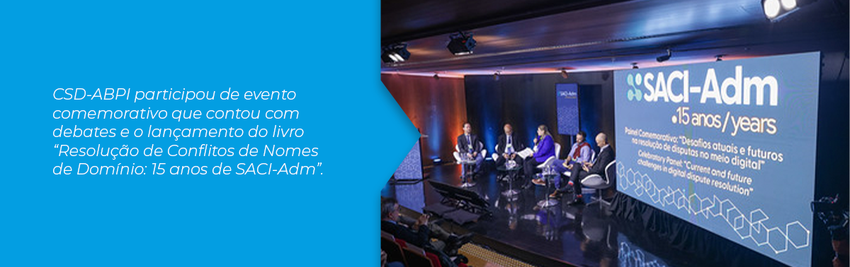 “A comemoração dos 15 anos do SACI-Adm é para nós motivo de orgulho e tem significado especial para a ABPI, que sempre advogou a adoção de um mecanismo extrajudicial para a solução das disputas de nomes de domínio”, disse o presidente do Centro de Solução de Disputas da ABPI (CSD-ABPI), Manoel J. Pereira dos Santos, durante a celebração do evento “15 anos do SACI-Adm: conquistas, desafios e próximos passos”, realizado no último dia 1 de outubro. Na ocasião, foi lançado o livro “Resolução de Conflitos de Nomes de Domínio: 15 anos de SACI-Adm”.